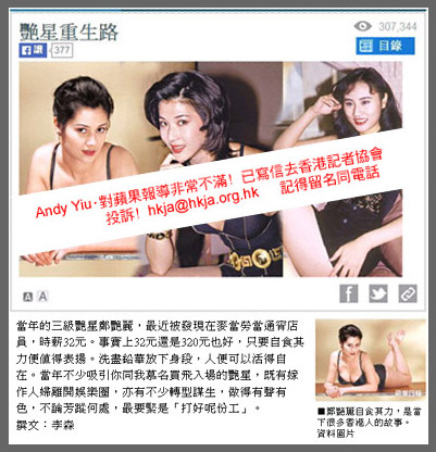 Andy Yiu : 對蘋果報導非常不滿! 已寫信去香港記者協會投訴! hkja@hkja.org.hk