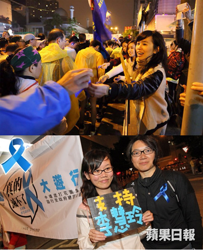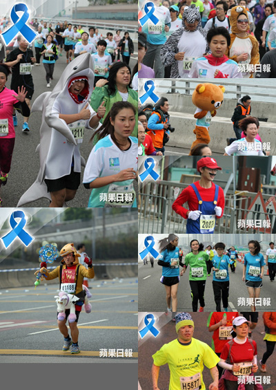 今日民主報的即時新聞大事催谷 " 藍絲帶運動 " , 可惜相關報導的大量圖片, 衹見藍絲帶是 " 別 " 在圖片上而不見有參賽者 " 別 "在身上, 這又是否自我感覺良好, 騎劫了渣打馬拉松參賽者, 傳遞出馬拉松參賽者 " 支持 " 藍絲帶運動的呢?