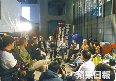 【新報訊】為爭取「真普選」的泛民絕食團,在中環匯豐銀行總行外絕食超過5天,期間遇上暴雨、冰雹,又體力透支,處於飢寒交迫的境況,有成員已於前天提早離場,亦有人昨身體情況嚴峻,亦相繼離場,各人都毋須送院治療;而昨天離場的人士的絕食時間已超過100小時的舊紀錄,現時仍然有7人在場絕食。