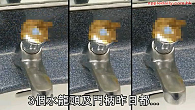 【本報訊】繼日前港大圖書館樓梯有人遺下糞便後,城市大學昨也驚現嘔心「屎跡」(圖),在一個男廁內,有3個水龍頭和門柄疑遭人抹上糞便,傳出陣陣惡臭。有人拍下「罪證」並上載至社交群組,形容事件「超恐怖」;校內學生表示不安,怒斥事件「黐線」。