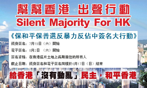 保和平保普選反暴力反佔中簽名大行動( 7.19.2014 – 8.17.2014 )