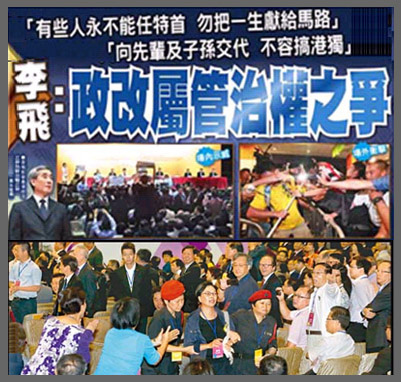 【明報專訊】中央就政改定出3重閘,泛民被指難以參與,曾稱大多數泛民都是愛國愛港的全國人大副秘書長李飛,昨向政府高層官員簡介政改時不惜說「硬」話,明言堅持與中央對抗的立場的人,「過去、現在,還是將來」都絕無可能擔任特首,又稱希望他們走上正途,「不要把自己的一生貢獻給馬路」。李飛其後被問若政改拉倒,中央需否負責,他說立法會議員「誰擋住,誰負責任」。