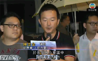 立法會議員陳志全到金鐘集會場地,宣布在立法會會期重開時,全面杯葛政府施政。