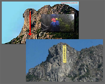 而日月神報在警方還未調查清楚就作出結論, 指 " 墮崖位置與過往曾掛 " 我要真普選 " 的攀山位置不同, 相信死者並非想在獅子山頭懸掛物品 ", 死者 墮崖位置與過往曾掛 " 我要真普選 " 的攀山位置是否真的不同? 網友可把民主報的新聞圖片與hknet 的新聞圖片比對一下, 是否真的不同?