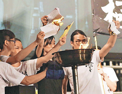 【明報專訊】四所大學學生會代表在維園燭光晚會上焚燒《基本法》,此舉是否支聯會「官方」六四悼念活動的一部分,有關人士都含糊其詞;一些在燭光晚會現場的人不以為然,有的人選擇即時離去,以示不認同。按目前的政治氛圍,焚燒《基本法》釋出的政治信號,會引發諸多猜疑,還可能使對峙對抗局面更惡化。支聯會有必要公開說明,以便讓各方知道到底發生了什麼事,以免因為誤讀、誤判而把香港推向更不明朗景况。