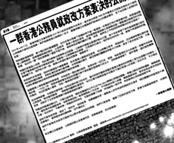 署名「一群香港公務員」在報章刊登全版公開信,要求立法會議員在表決政改方案時投反對票,否則璀璨香港將會 「光輝到此」。