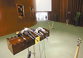 是否有須要改變一下這等採訪形式, 取消了走廊的採訪區, 撤走走廊的桌子、飲水機和電視, 另外安排一個向傳媒開放, 寬敞的簡報及採訪室讓記者等候, 勸喻議員不要再在走廊接受記者訪問, 會議後由議員自行到採訪室會見記者(相信這是議員樂意為之的), 如記者意欲採訪特定議員, 亦可預約邀請議員到簡報及採訪室接受採訪, 則記者毋須在走廊苦候議員, 亦可在等候期間如到了用膳時間可在採訪室用膳, 不致在走廊開餐這樣 " 有礙觀瞻 ".