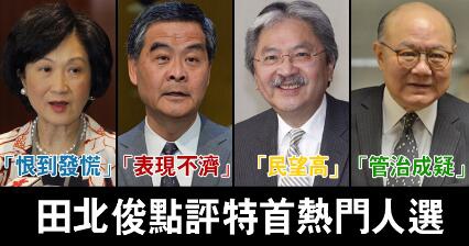 特首選舉明年3月舉行,自由黨榮譽主席田北俊於港台節目中,點評多名已宣布參選或熱門人選。