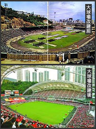 曾幾何時, 政府提出改建政府大球場計劃, 由馬會全資贊助, 建成一個美輪美奐, 可容四萬觀眾, 觀眾席有獨立私人包廂的國際級足球場(及欖球場), 但卻為了容納更多觀眾席及符合標準足球場(及欖球場)要求面積, 就犧牲了田徑跑道, 令附近的學校失去了就近上足球及田徑體育課, 以及辦運動會的場地, 這樣的犧牲是否值得就見仁見智,