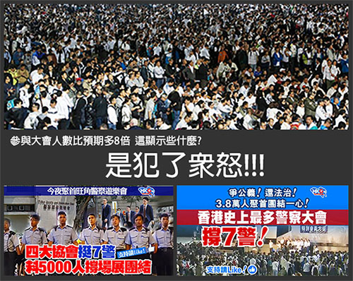 參與警察協會聯合舉行的特別代表大會集會人數比預期多8倍, 這顯示些什麼? 是顯示犯了眾怒! 無疑, 七警在法律上是犯了法, 應對自己的行為負責, 但此案情形特殊, 警員是違法佔中期間, 在同僚受到違法人士極度侮辱的挑釁(被潑尿液)才幹出非理性的行為, 而不是在街上巡邏時, 欠缺理據沒由來的對嫌疑人物濫用武力傷害對方, 前者是罪無可恕, 但情有可原, 後者則是濫用武力, 兩者量刑應有所區別,