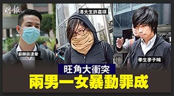 去年農曆初二凌晨旺角大衝突中,兩男一女涉嫌向警方投擲玻璃樽等物件,各被控一項暴動罪,3人今在區域法院被裁定罪成,法官下午聽取三人求情理由。案件押後至明日11時半判刑。