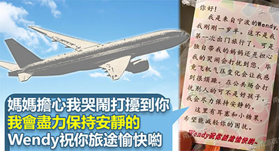媽媽乘飛機怕BB哭鬧打擾他人 向乘客派發心意卡和耳塞