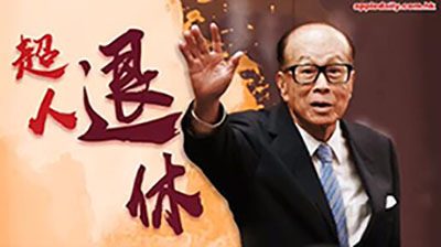 【本報訊】本港首富李嘉誠退休了。以長和(001)及長實(1113)作為上市旗艦,在香港商場叱咤逾半世紀的「李超人」,在即將踏入90歲之齡,宣佈於股東會後退任主席及執行董事職位,轉任資深顧問,並全力投入李嘉誠基金會工作。其市值1.1萬億的長和系王國,由長子「小超」李澤鉅接手。