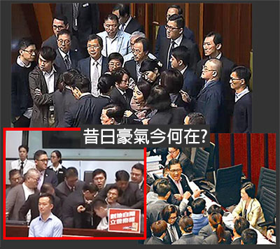 這說明了什麼? 立法會議員在會議廳內的言論受基本法保障, 但行為如觸犯刑法, 令致立法會保安人員受傷 ( 屢有先例 ), 可以被追究刑事責任, 立法會梁君彥亦明言有責任保護立法會職員的人身安全, 再加上梁游被判監, 長毛搶官員文件是否可以甩身亦存在變數, 瘋鴿搶手機(生死未卜), 一些前此每以激烈行為與保安人員糾纏的反對派議員, 自然心中有數, 不敢以身試法, 一個不好令致立法會保安人員受傷被告上法庭罪成判監, 可能連席位也不保,