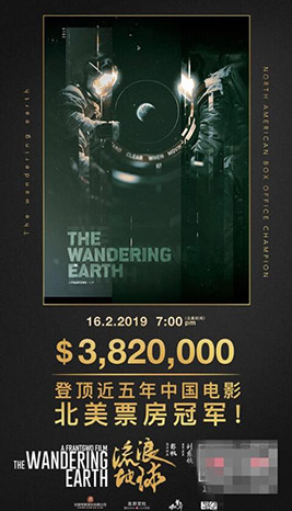 牆內開花牆外香。《流浪地球》在海外的表現也非常搶眼,截止北京時間2月16日19點,在北美上映11天斬獲382萬美元的票房,登頂近五年中國電影北美票房榜No.1,同時刷新近五年中國電影TOP5排名。
