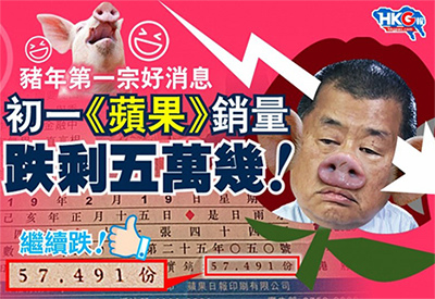 有說《蘋果》銷量下跌是因為它今年元旦起加價兩蚊賣十蚊,結果「元旦加價」變了「完蛋加價」。不過睇返長遠走勢,又似乎是肥佬黎搞佔中不得人心趕客的因素居多。究竟《蘋果》銷量插水是加兩蚊的教訓還是搞佔中的報應?沒人說得清,但所有人都會開香檳慶祝:抵死!