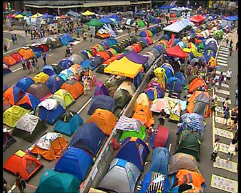 記得佔中之初,萬人瞓街,係威係勢。但事情發展下來,黑社會混入、精神病患進駐,佔領地開始不受控。領袖們睡的是中環五星酒店,追隨者看在眼裏,開始覺醒歸家,瞓街的人買少見少,於是,反對派想出一招虛張聲勢的空城計,就是轉用帳幕陣。