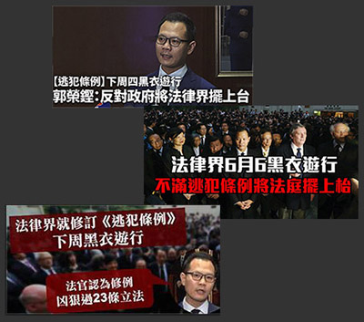 為「反送中」、反修訂《逃犯條例》,香港法律界大搞黑衣遊行。在六月六日,據報道說有逾二千人在各知名大狀和香港法律界領袖的帶領下,由終審法院出發,遊行到政府總部外抗議。